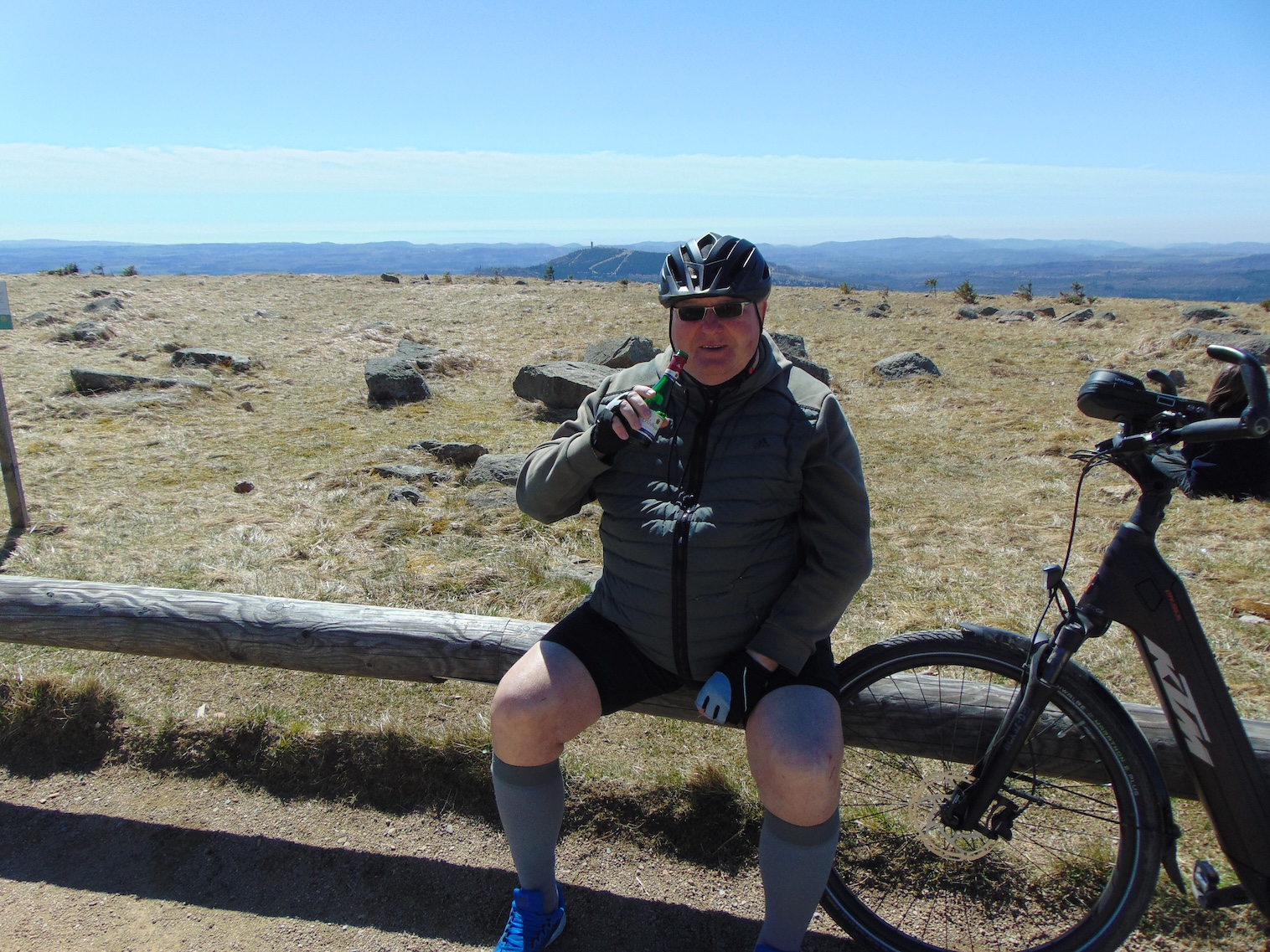 Zum siebenten mal stand ich in meinem Leben auf dem Brocken, viermal zu Fuß hochgewandert, zweimal mit der Brockenbahn und heute endlich mit dem Rad. Das ganze hat eine Vorgeschichte. Vor einigen Jahren unternahm der LAV Halensia mal einen Trainingslauf von Schierke auf den Brocken. Ich wollte dabei sein und dachte mir, mit meinem Pedelec hochzufahren. Es war mein erstes mittlerweile altes nicht so leistungsstarkes Rad und ich war völlig untrainiert. Nach 7 der 10 km war Schluss. Ich war komplett am Ende und musste nach zwei schon zuvor eingelegten Gehpausen aufgeben.