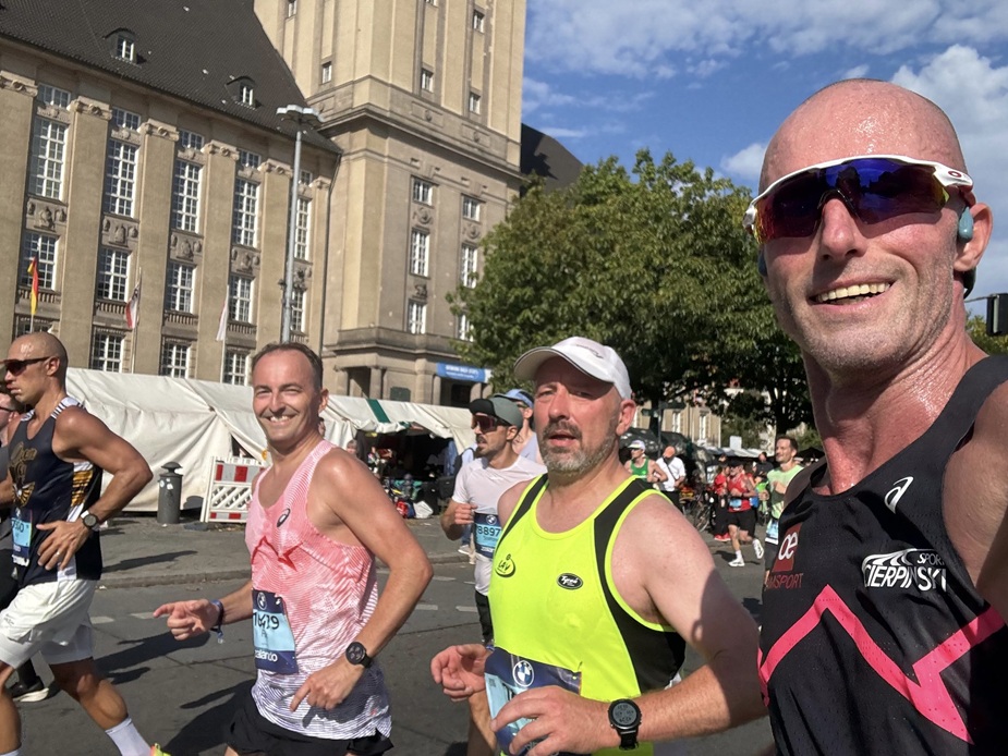 Allerdings waren wir dann doch eine illustre hallesche Truppe, die sich auf den von BMW „gesponsorten“ Weg nach Berlin machte. Darunter Falk Cierpinski, der in Berlin 2008 mit einer Zielzeit von 2:13 schon Mal unter den Top 10 gelandet war und die bekannten Herren von OE Teamsport um den Lauf-Mäzen Steffen Oehlschlegel himself.