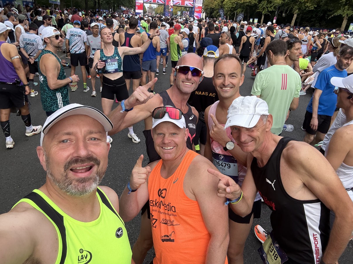 So viel vorab, ich liebe Berlin. – Mein erstes Mal Berlin Marathon ist satte 22 Jahre her. Damals waren noch 30.000 Leute aktiv dabei, heute sind es fast doppelt so viele. Klar bedeutet das Gedränge am Start, volle Straßen, viele Plastikbecher an den Getränkeständen und wahrscheinlich volle Taschen bei den Veranstaltern. Trotzdem ist die Atmosphäre in unserer Hauptstadt unvergleichlich. Dieses babylonische Sprachengewirr im Tiergarten und die glücklichen Gesichter aus aller Welt im Ziel machen Berlin in diesen, global gesehen, wilden Zeiten einmal im Jahr zum Nabel der friedlichen (Läufer-)Welt. – Jedes Mal, wenn ich den Marathon im Fernsehen gesehen habe, kamen mir die Tränen. Bei der Auslosung hatte ich allerdings in den letzten Jahren immer wieder Pech, wie wahrscheinlich andere LAVler auch. Außer Patrick Latki hatte ich im Vorfeld keine Vereinsmitglieder auf der Startliste gefunden.